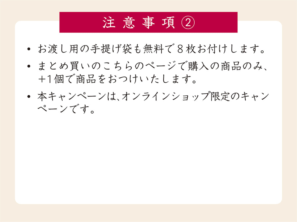 お渡し用の手提げ袋を8枚無料でお付けします。
